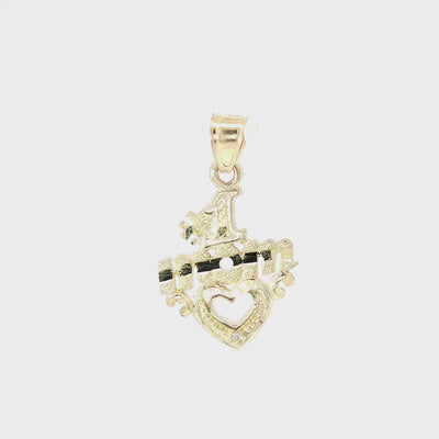 10K Solid Yellow Gold “#1 Mom” Heart Pendant – 1.16g