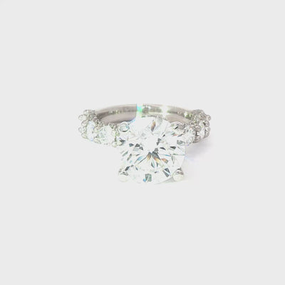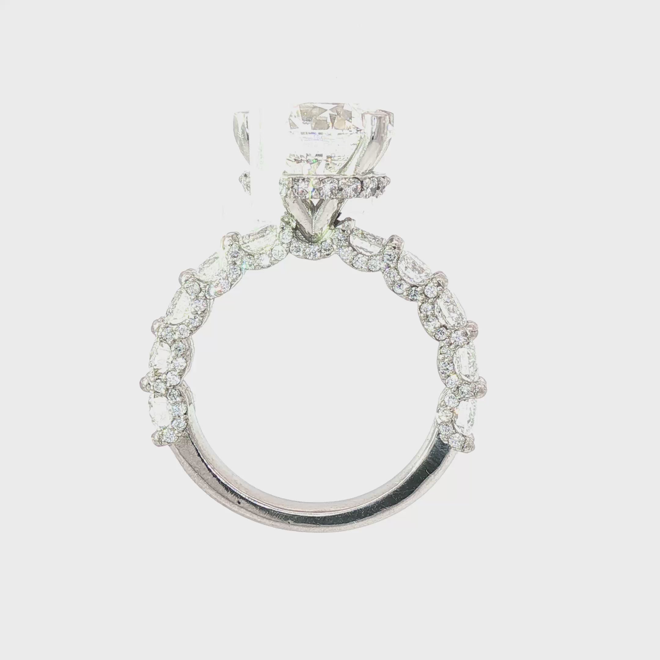 In total, the ring features approximately 2.42 carats of accent diamonds, bringing the overall diamond presence to more than 7.5 total carats. Every detail—from the sculpted prongs to the finished gallery beneath the center stone—reflects intentional design and high-level craftsmanship rarely seen in mass-produced settings.