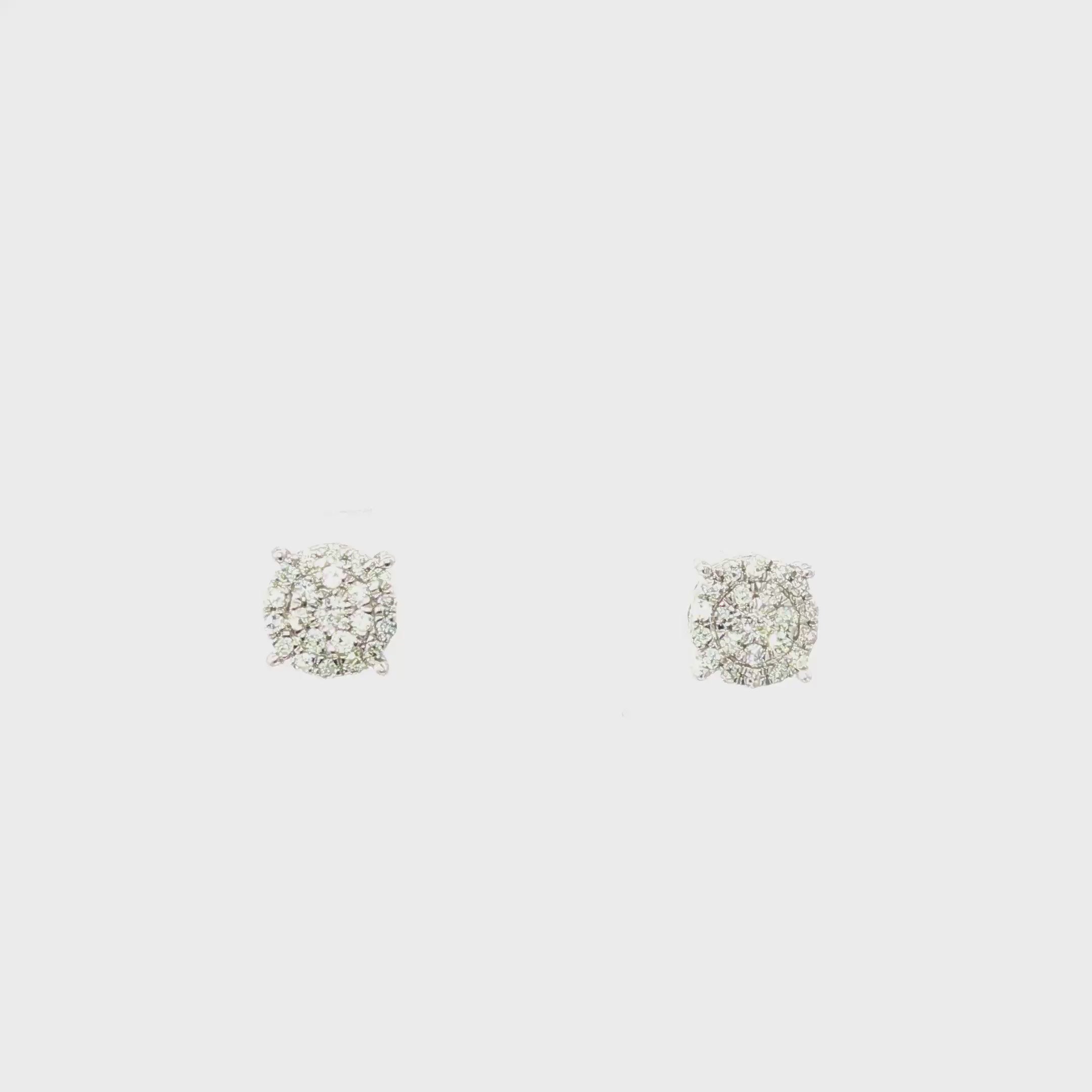 Exquisite diamond cluster studs that radiate refined brilliance. Crafted in luminous 10K white gold, each earring features a circle of round brilliant-cut natural diamonds arranged to amplify light from every angle—perfect for effortless daily sparkle or a polished evening finish. 10k white gold diamond cluster stud earrings.