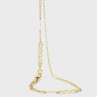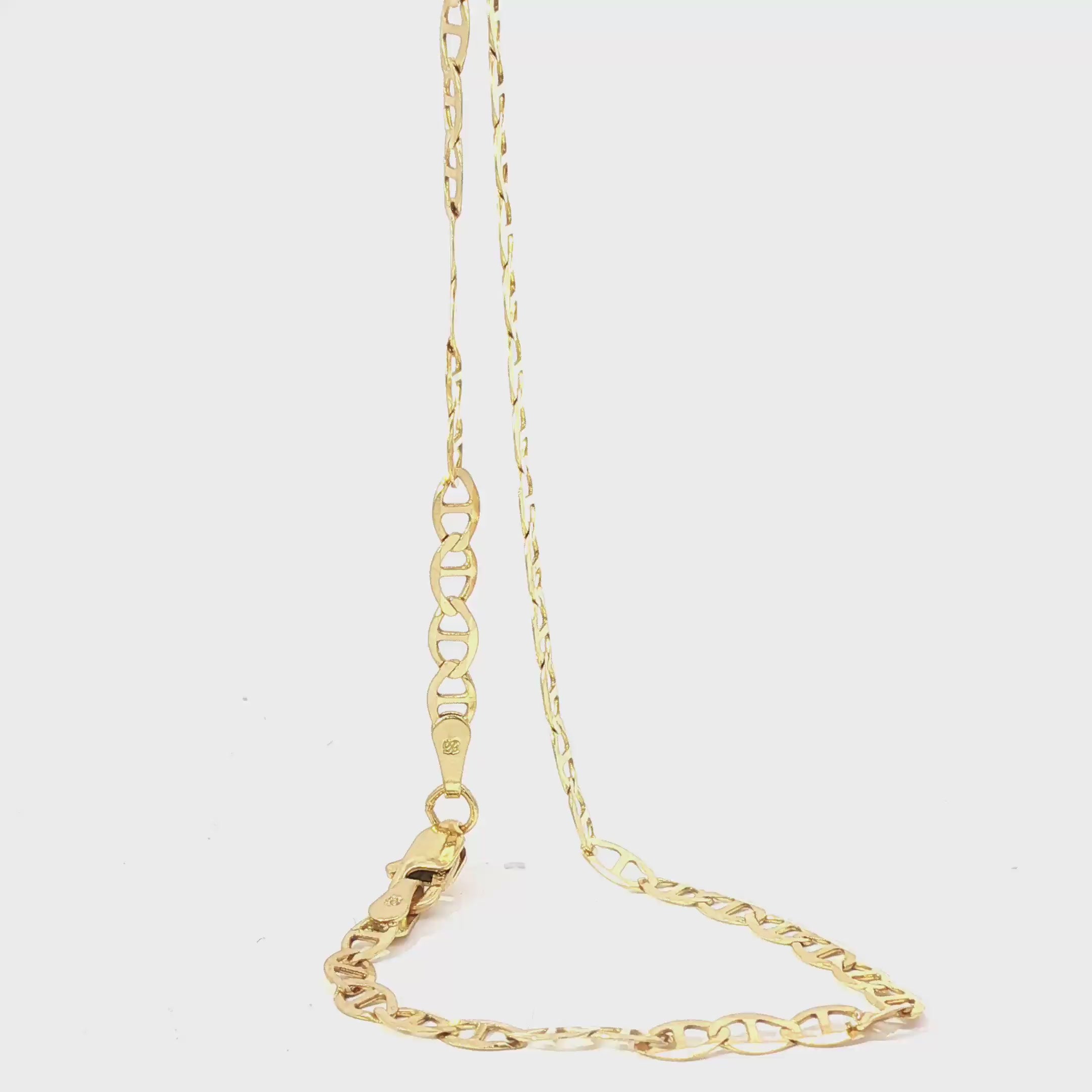 The Mariner link traces its heritage to nautical anchor chains—oval links bridged by a central bar for strength at sea. Reimagined in fine gold, the design marries maritime utility with modern elegance, creating a refined staple that has endured for generations.