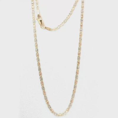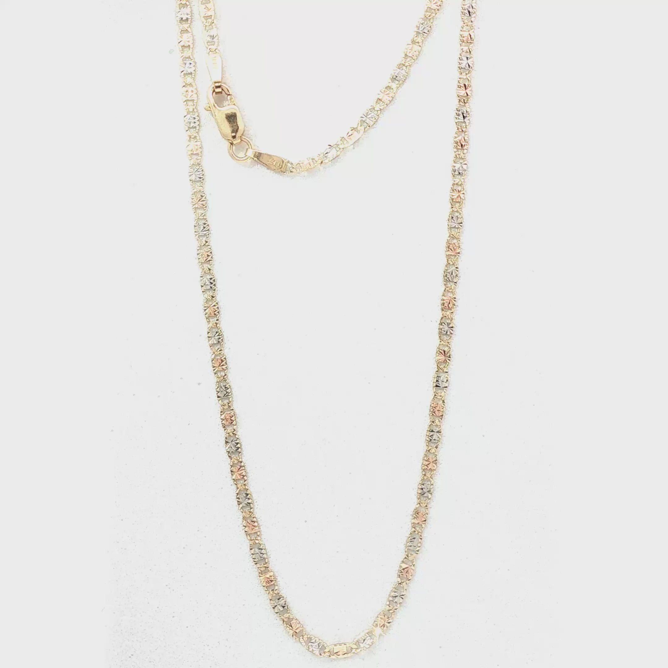 Also known as the Figarucci, the Valentino link blends elements of curb and Figaro chains. Rooted in Italian goldsmithing, its alternating long and short links create dimension, flexibility, and strength—making it a modern classic prized for refined, timeless appeal.