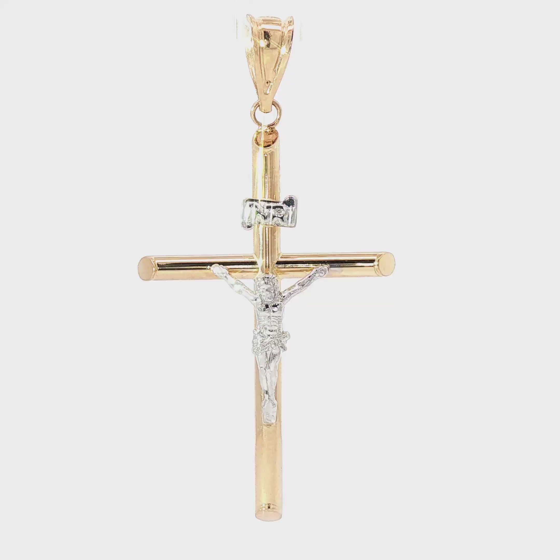 The crucifix has symbolized enduring faith for centuries. This two-tone hollow round tube interpretation honors that legacy with a refined, contemporary profile—made to be cherished and passed on.
